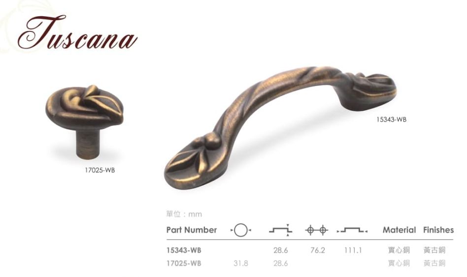 Century Tuscana系列 單孔櫥櫃把手 直徑31.8mm 17025