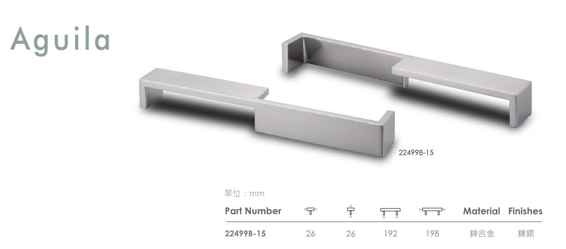 Metakor Aguila系列雙孔櫥櫃把手 孔距192mm 22499B