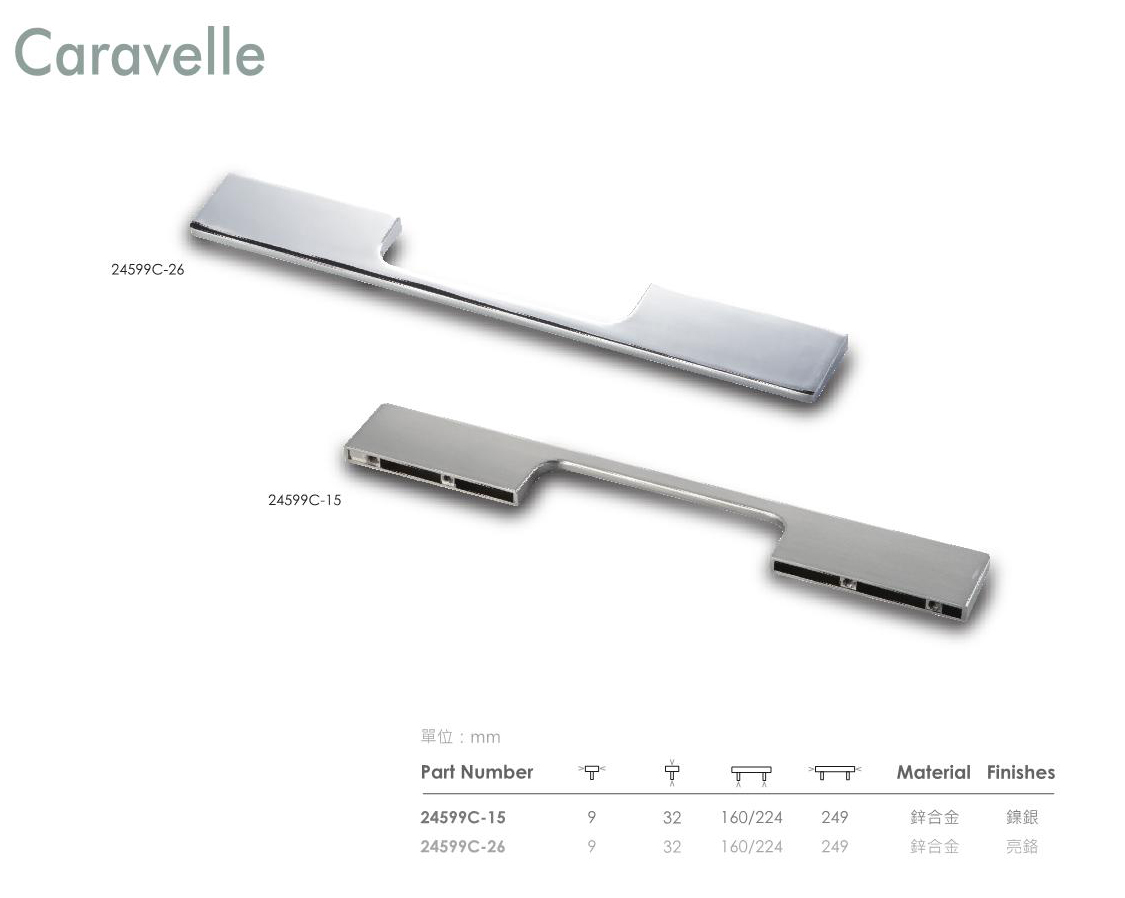 Metakor Caravelle系列雙孔櫥櫃把手 雙孔距160/224mm 24599C